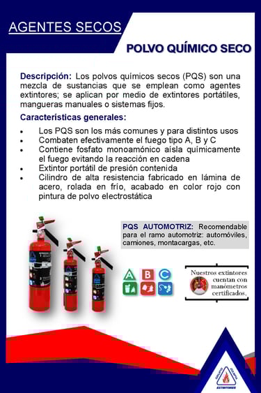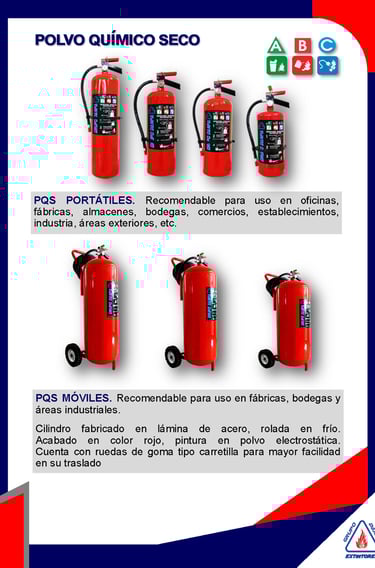 Nuestros extintores están fabricados con materiales de alta calidad que garantizan durabilidad y un óptimo desempeño en situaciones de emergencia. Cumplen con las normas oficiales mexicanas y están cargados con polvo químico seco ABC de gran eficacia. Son la opción ideal para proteger hogares, oficinas e industrias con confianza y seguridad.